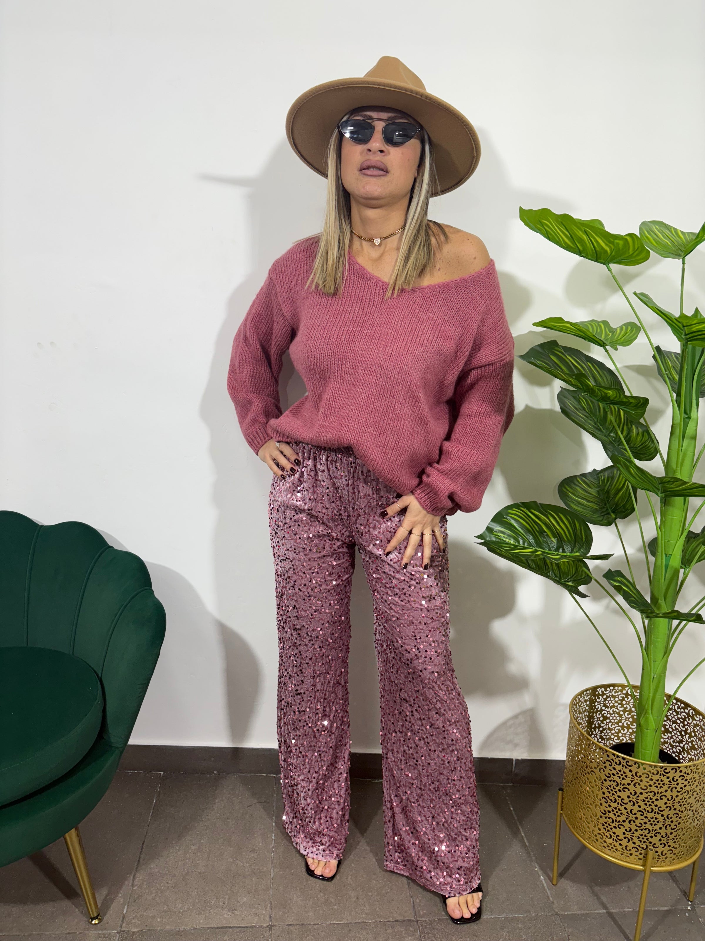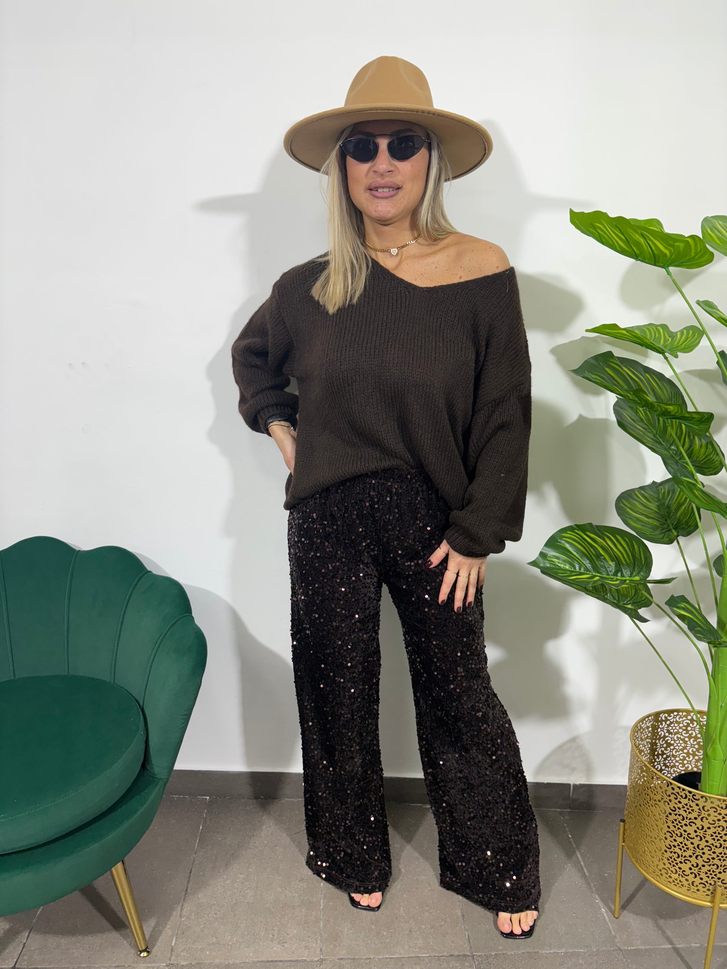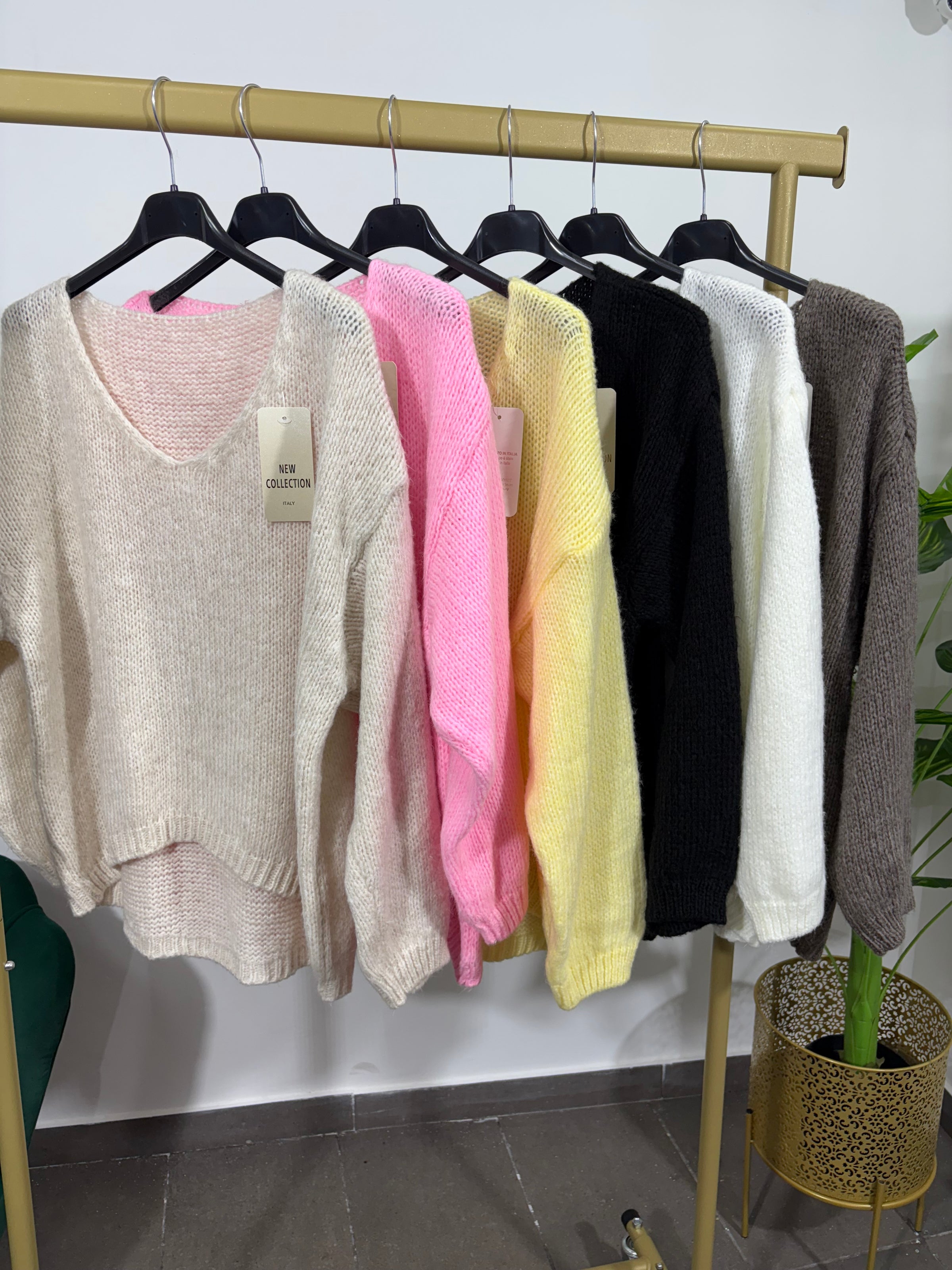 Maglione in lana scollo a “V” tg unica veste fino a tg 48