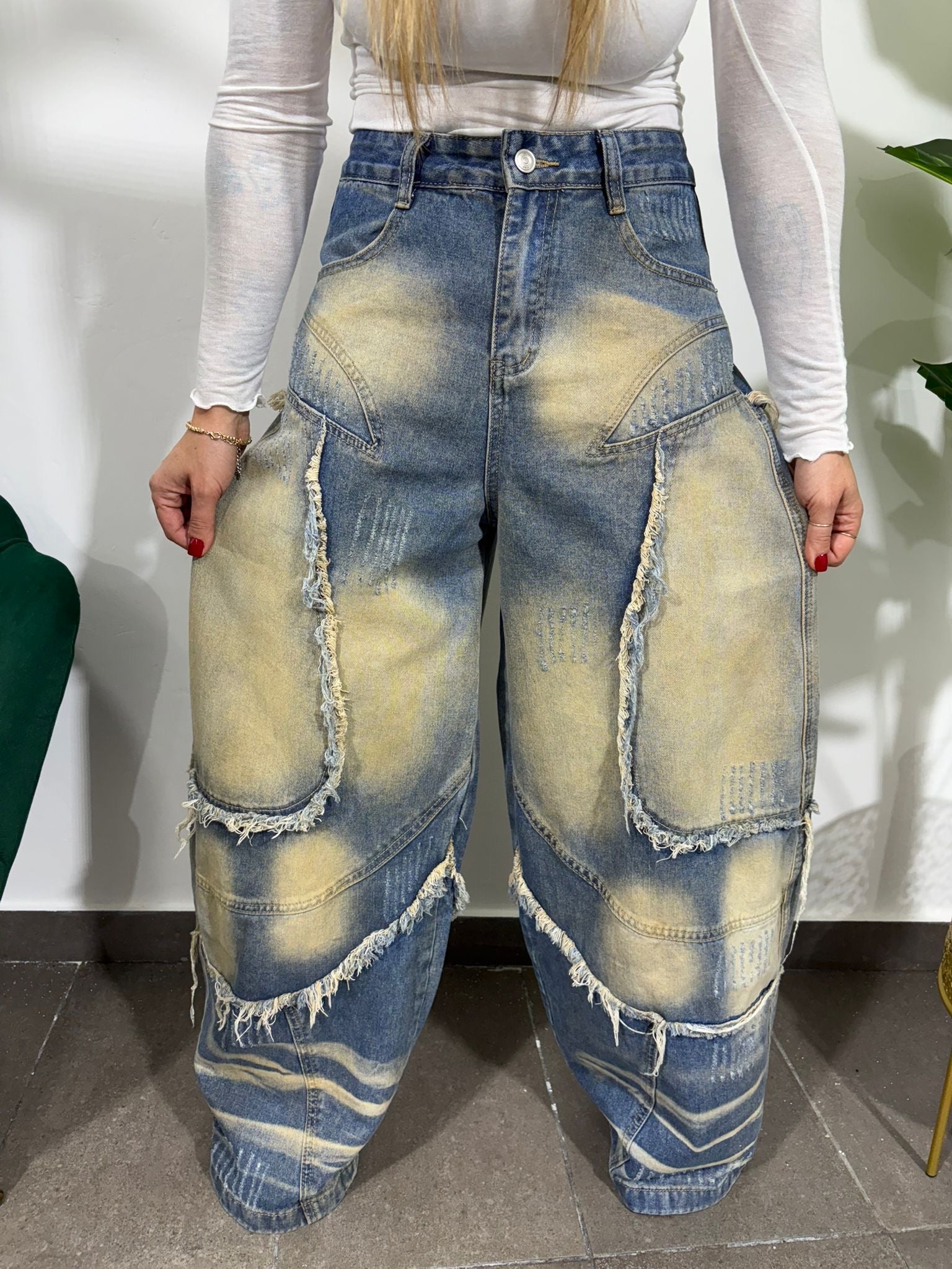 Stupendo denim over baggy in questo lavaggio con sfumature beige.